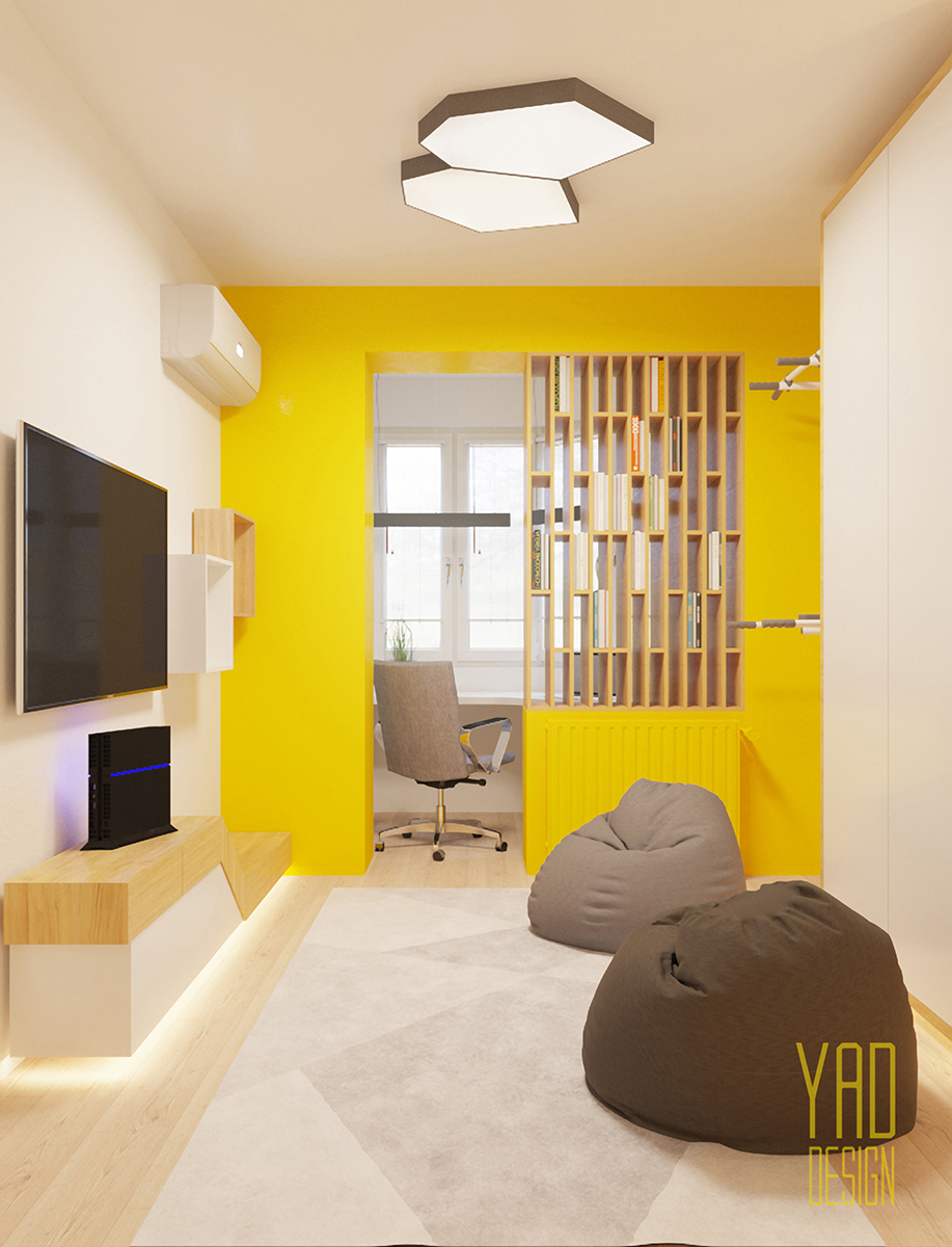 Создать современный интерьер с элементами стиля Loft. В связи с взрослением ребенка необходимо было cделать перепланировку, изменить функционал помещений и сделать долгожданный ремонт. Клиентам было принципиально сохранить открытую планировку в зоне кухни-гостиной и максимально задействовать пространство балконов. Так родилась идея спрятанной спальной зоны.