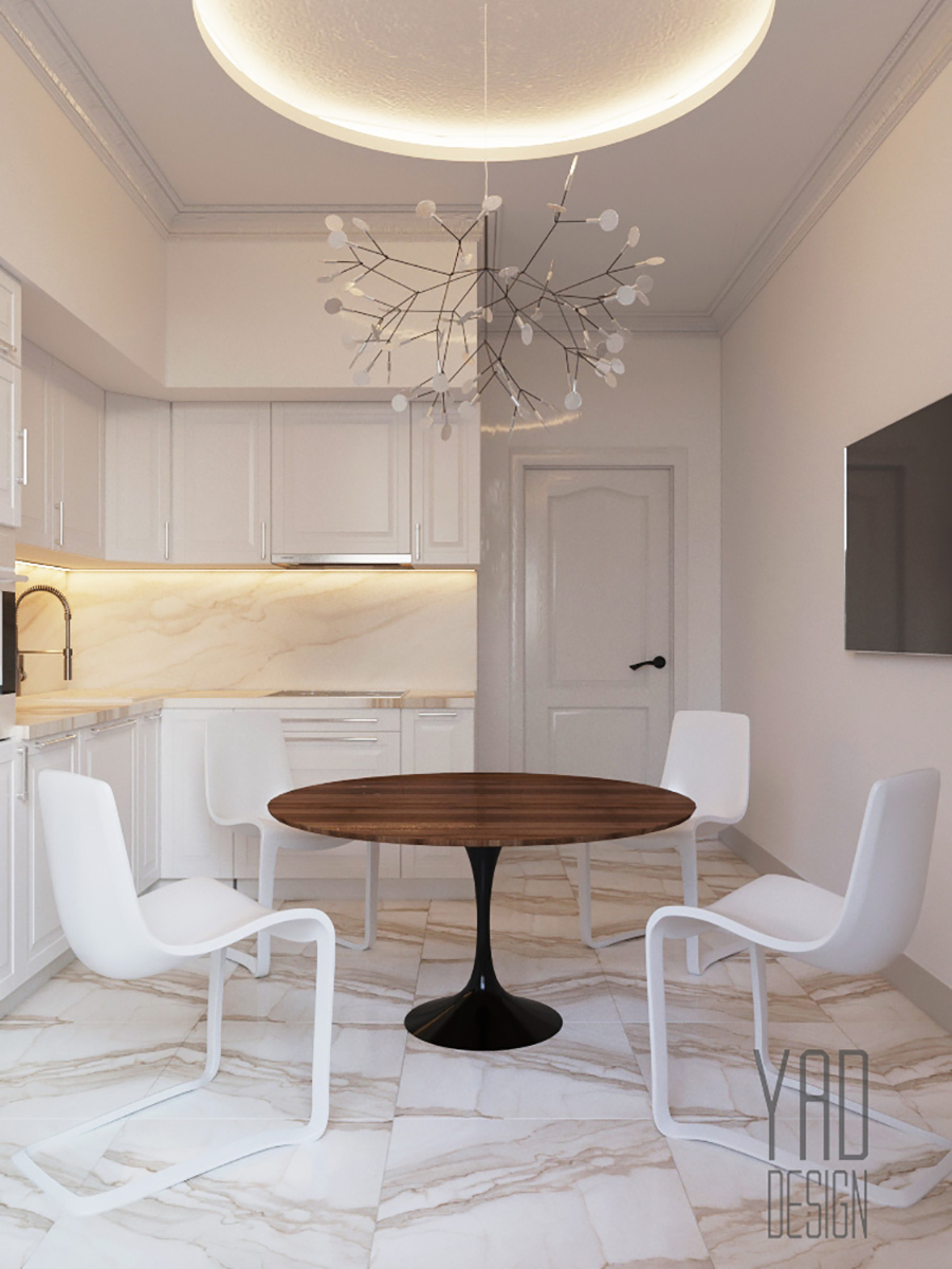 Создать светлый, эклектичный интерьер гостевой квартиры. Заказчик хотел совместить классический и современный стили.